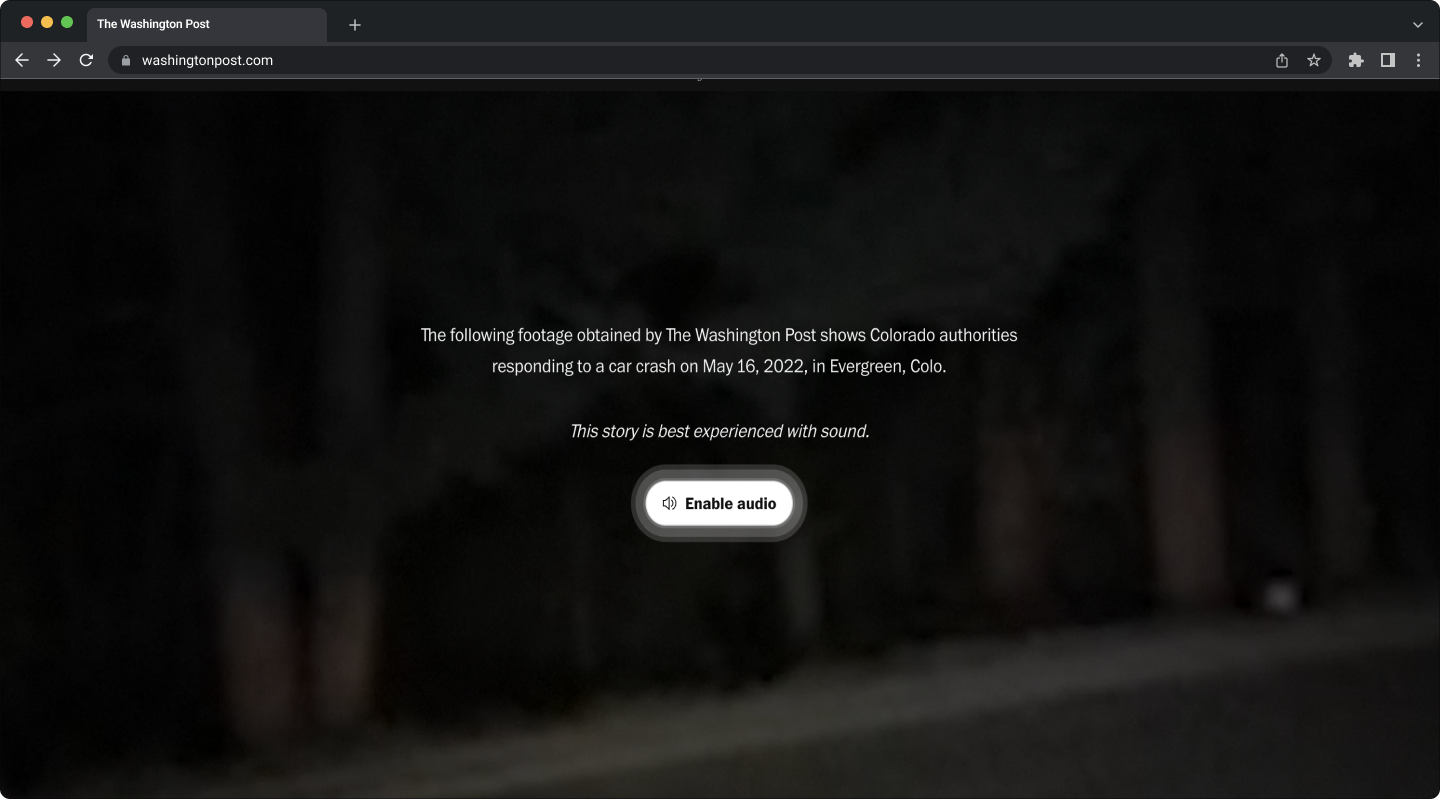 Additionally, at the top of the story we wanted to use a mix of dash camera footage and audio from a 911 dispatcher. The project team felt that the video should autoplay at the top of the story, but I advocated for an introduction before the video started to explain to viewers what they were about to see. We also added a call to action asking users to to enable audio, but still included the option to enable or disable audio after the video had started.